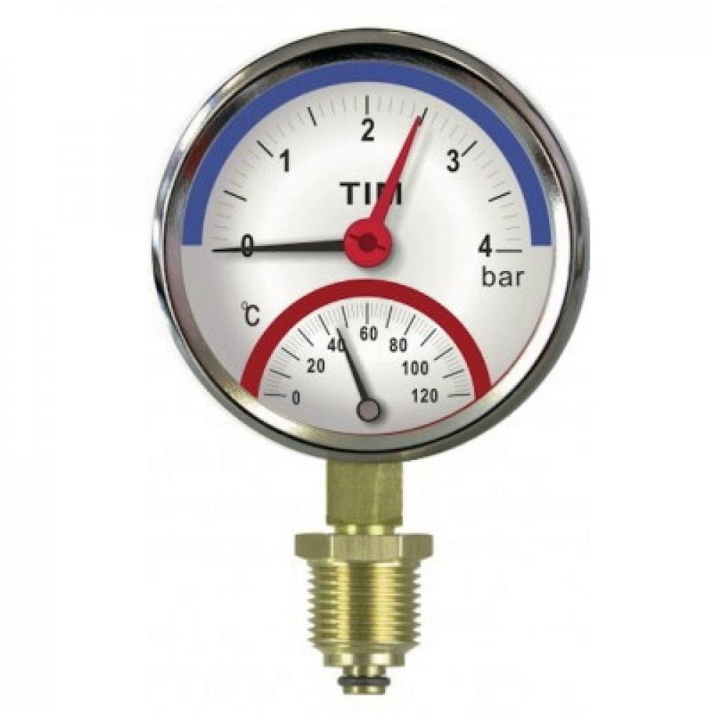 Термоманометр радиал. (нижн.подкл) с авт.запор. клап. Корп. Dn 80 мм, 1/2", 0-4 bar, 0-120°С, TIM