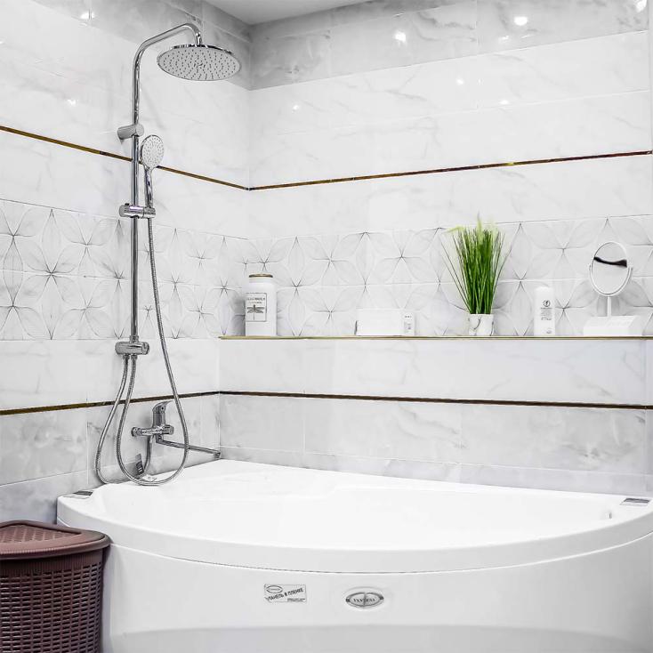 Душевая стойка для ванной, имеет устойчивое хром-никелевое покрытие, защищающее поверхность от воздействия агрессивных моющих средств, предотвращающее появления разводов и пятен, и обладает антибактериальными свойствами.