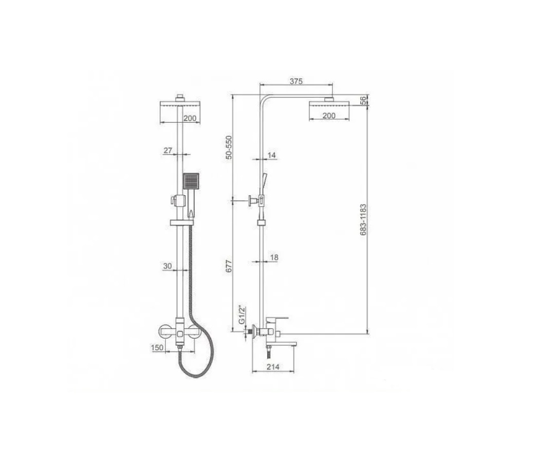· Высота ручной лейки регулируется по высоте, что очень удобно для принятия душа