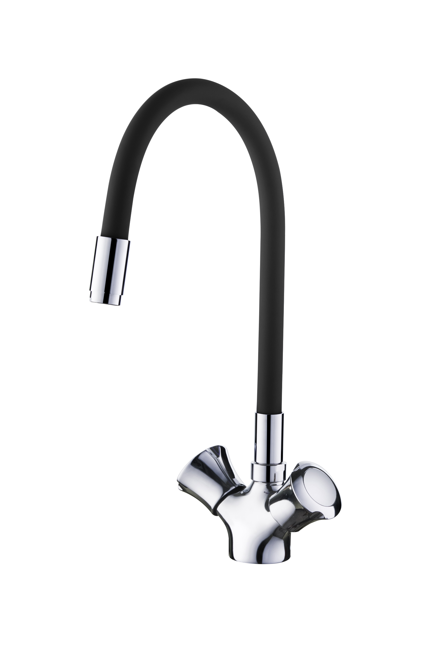 Смеситель кухня силиконовый излив ручки Силумин Черный Accoona A4883F