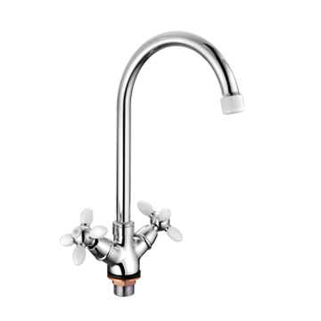 Смеситель кухня на гайке крест Силумин Белый+Хром Accoona A4582G (АС5)