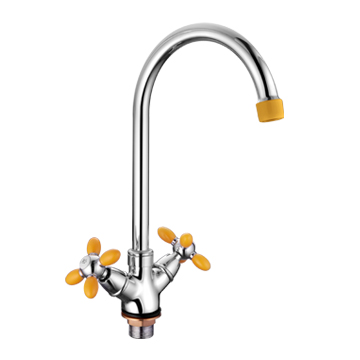 Смеситель кухня на гайке крест Силумин Желтый+Хром Accoona A4582H