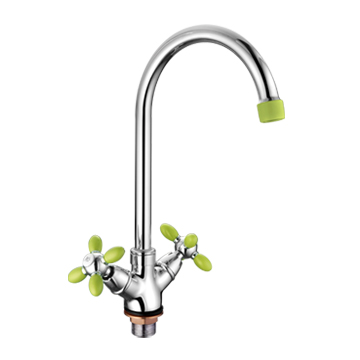 Смеситель кухня на гайке крест Силумин Зеленый+Хром Accoona A4582K