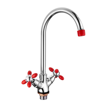 Смеситель кухня на гайке крест Силумин Красный+Хром Accoona A4582N