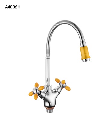 Смеситель кухня с гибким изливом на гайке (крест желтый). Силумин, Accoona A4882HБренд Accoona