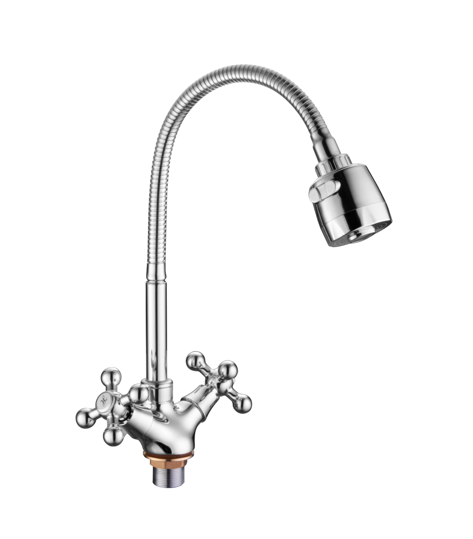 Смеситель кухня на гайке крест гибкий излив двухрежимный Accoona A4871 (АС5) (АС8`)