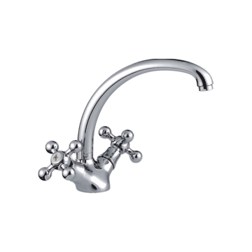 Смеситель кухня крест толстый гусак Силумин Хром Accoona A5071