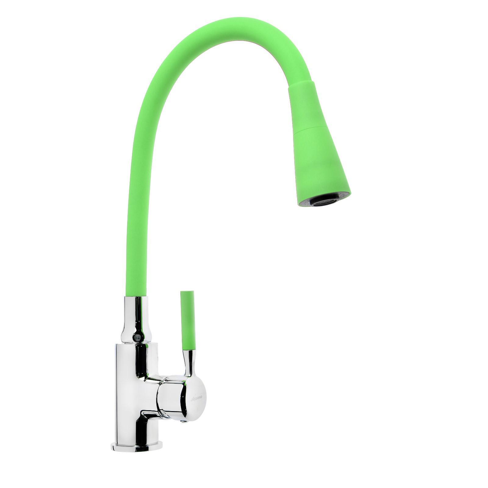 Смеситель кухня силиконовый излив двухрежимный (35) Латунь Зеленый+Хром Accoona A9890K-1