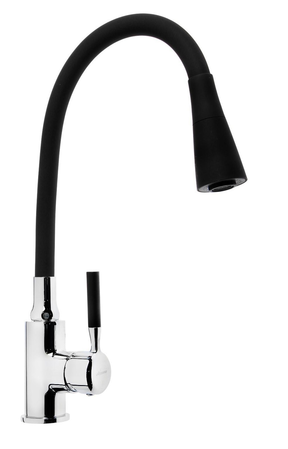 Смеситель кухня силиконовый излив двухрежимный (35) Латунь Черный+Хром Accoona A9890F-1 (АС4) (АС7`)