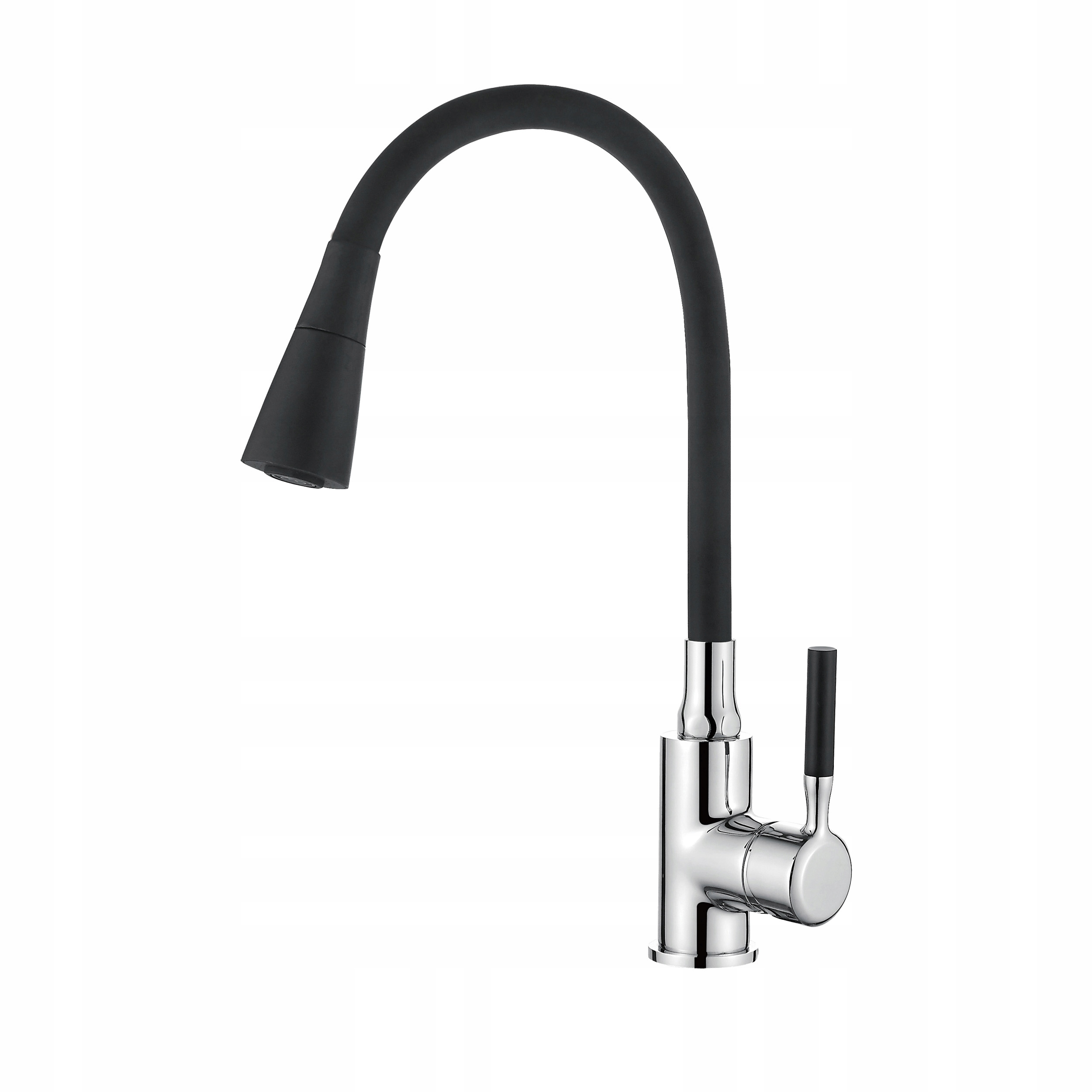 Смеситель кухня силиконовый излив (35) двухрежимный Нержавеющая сталь+Черный Accoona A9890F-3 (АС2)