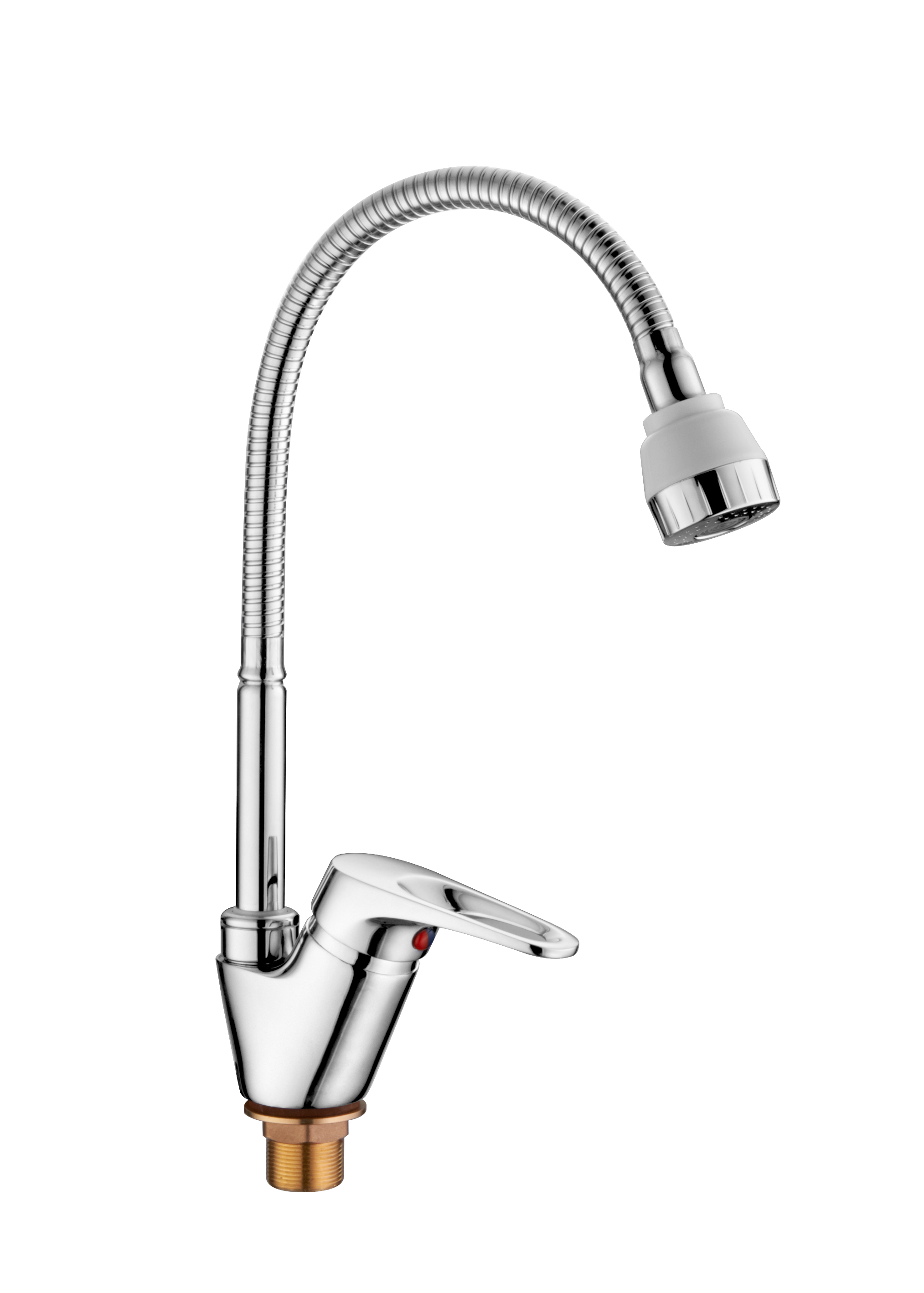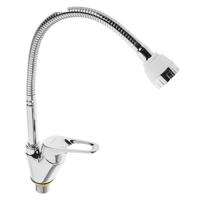 Смеситель кухня с гибким изливом на гайке (35). Силумин, Accoona A84850Цвет Хромированный