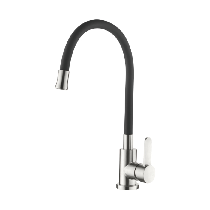 Смеситель кухня силиконовый излив (35) Нержавеющая сталь+Черный Accoona A48104F (АС2)