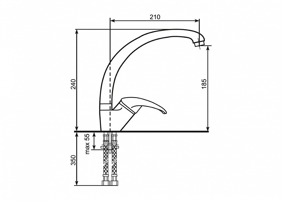 · Длинa излива: 210 мм