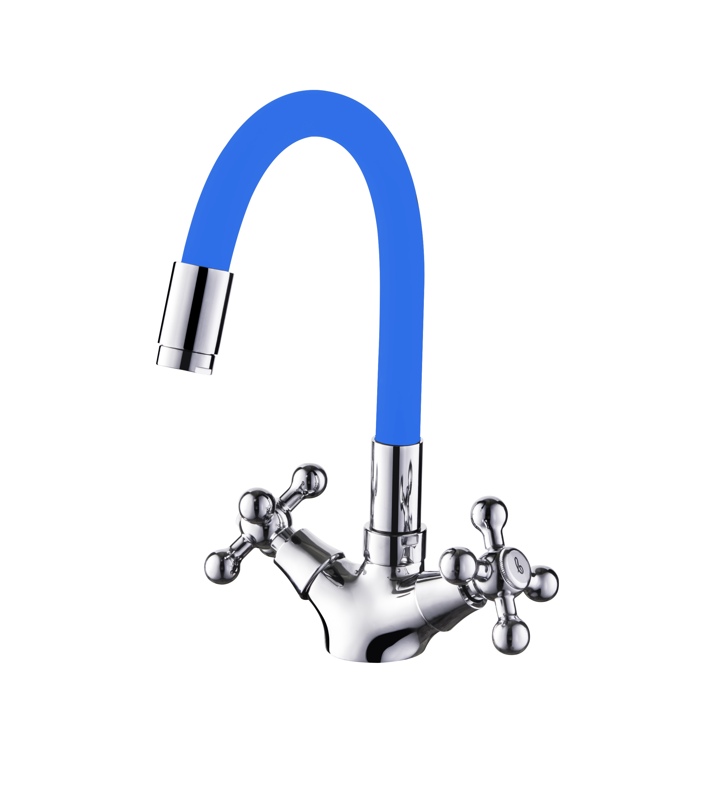 Смеситель раковина крест силиконовый излив Синий+Хром Accoona A9871M (АС6)
