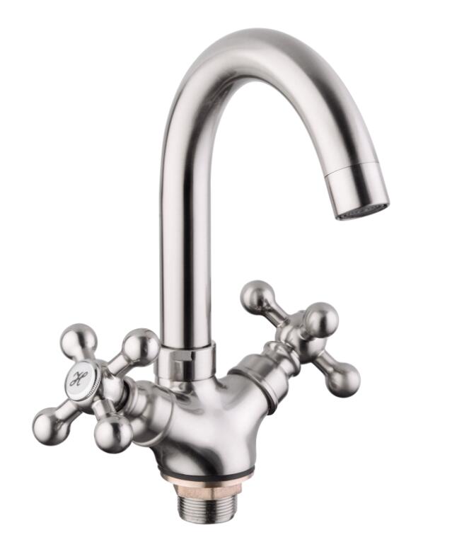Смеситель раковина на гайке крест поворотный излив Сатин Лаунь Accoona A9671A (АС6)