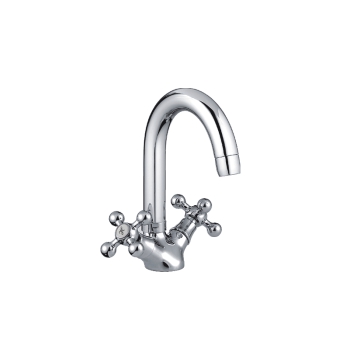 Смеситель раковина крест поворотный круглый излив Силумин Accoona A9471
