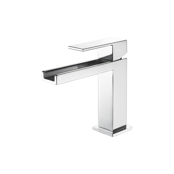 Смеситель водопад имеет сплошную, и приплюснутую форму, вода рассеивается непрерывной струей в виде каскада по краю пластины, что образует водопад.