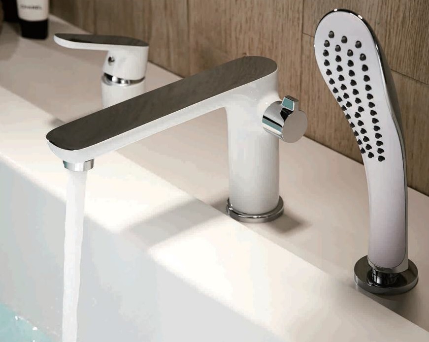 Смеситель каскадный врезной "Тройка" A6519G Латунь Белый+Хром Accoona