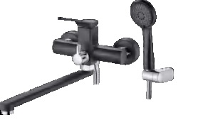 Смеситель ванна прямой нос 35 см (25) дивертор в корпусе Латунь Черный Accoona A71122F