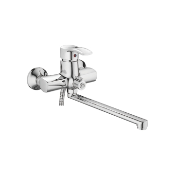? Смеситель для ванной с душевой лейкой, имеет устойчивое хромоникелевое покрытие, защищающее поверхность от воздействия агрессивных моющих средств и предотвращающее появления разводов и пятен.