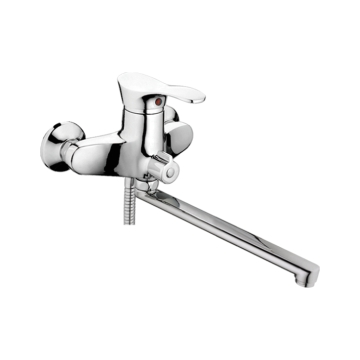 · Эргономичная рукоять на корпусе смесителя служит для смешивания горячей и холодной воды, а также регулировки напора. Для направления потока воды от крана к душевой лейке и обратно на корпусе смесителя есть поворотный переключатель, независящий от напора воды, что немаловажно при использовании.