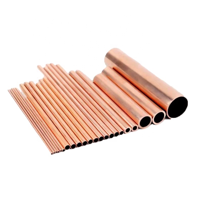 Медная труба содержит заглушки для предотвращения попадания инородных предметов, упакована в полиэтилен.