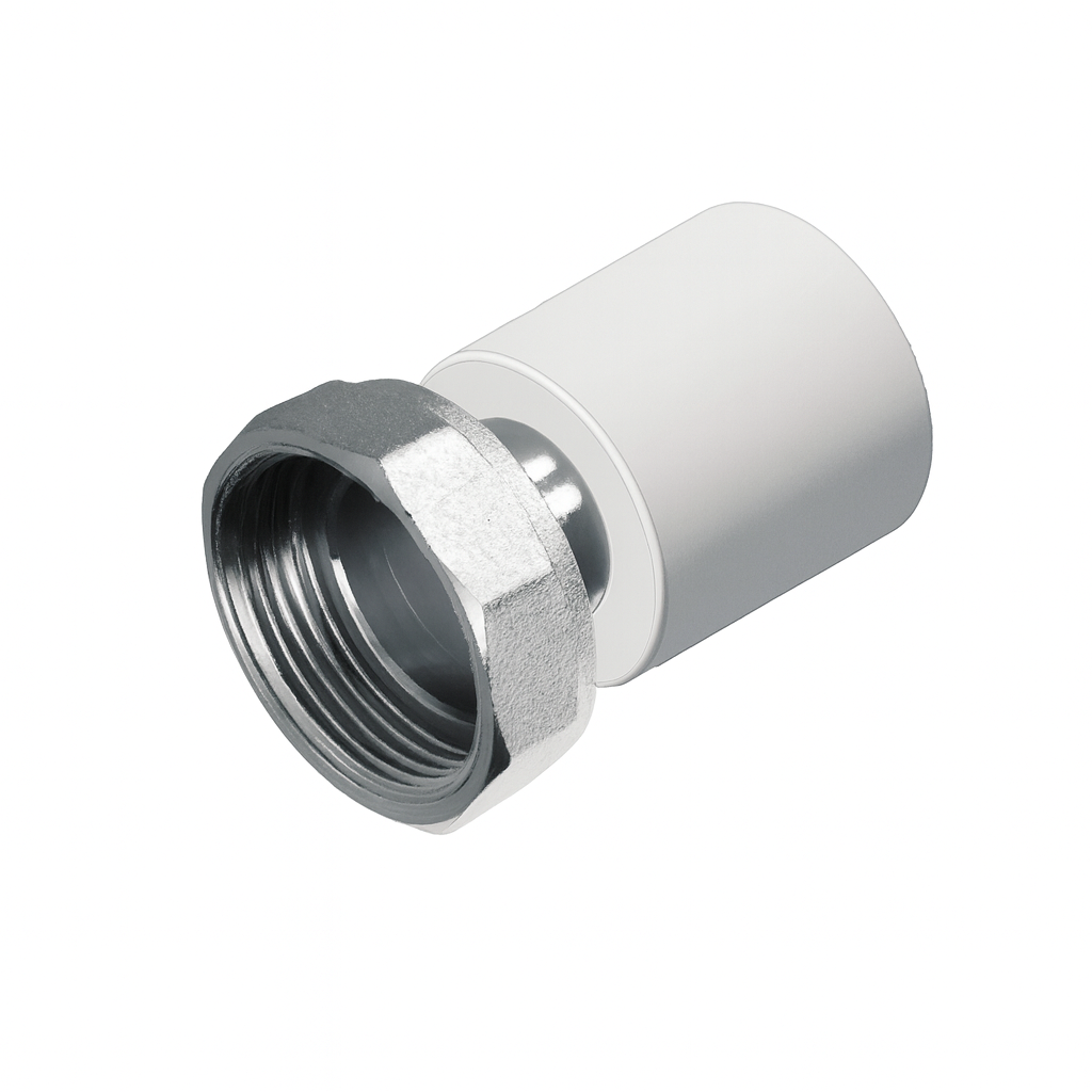 Муфты с накидной гайкой предназначены для соединения труб PPR с металлической трубой или резьбовым фитингом.Максимальное рабочее давление, бар 25
