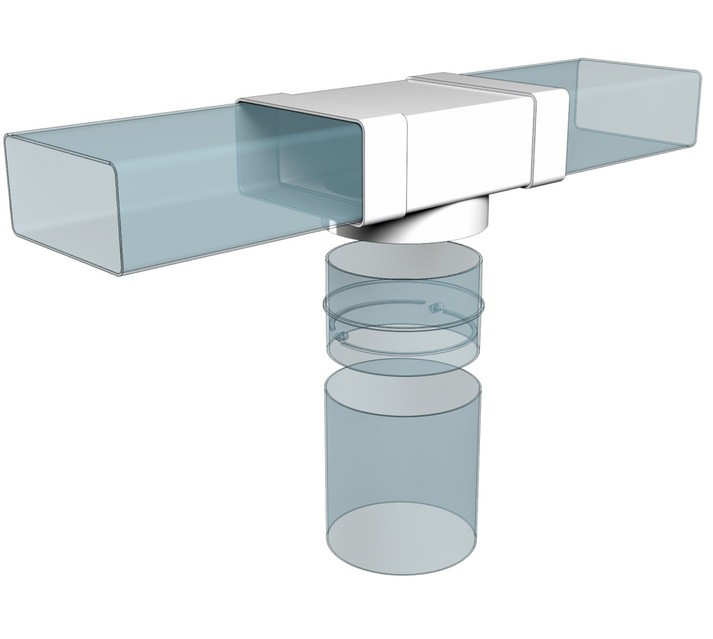Для организации сложных систем вентиляции и отводов с воздухораспределителями или круглыми воздуховодами под углом 90°.Соединяются напрямую c прямоугольными воздуховодами и воздухораспределителями, имеющими фланец