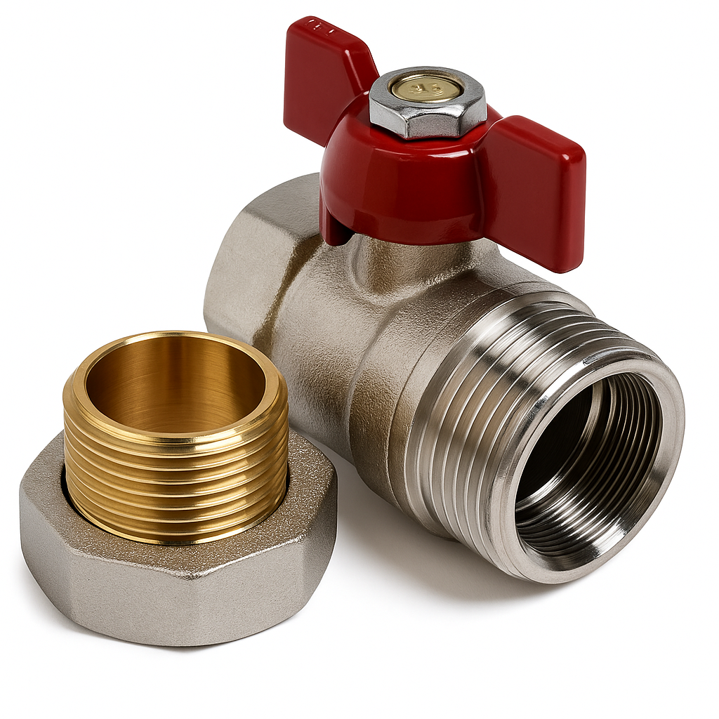 Кран шаровой 1/2 с американкой г/ш серии STANDARD, бренд TIM (арт.?BV200?2N), с никелированным корпусом и удобной красной ручкой?«бабочка».Конструкция полнопроходная обеспечивает максимальную пропускную способность при минимальном сопротивлении потоку. Благодаря американке установка и обслуживание этого крана проходят легко и быстро.