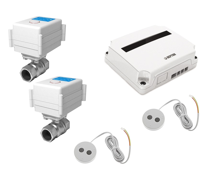 Система контроля протечки воды Neptun Aquacontrol предназначена для своевременного обнаружения и локализации протечек воды в системе водоснабжения и отопления жилых домов, коттеджей, офисных зданий, магазинов.Система заблокирует подачу воды до устранения причин протечки и проинформирует о возникшей аварии звуковым и световым сигналами.