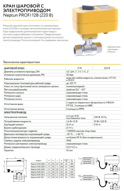 Кран шаровой с электроприводом Neptun PROFI 220В 3/4 нержавейка